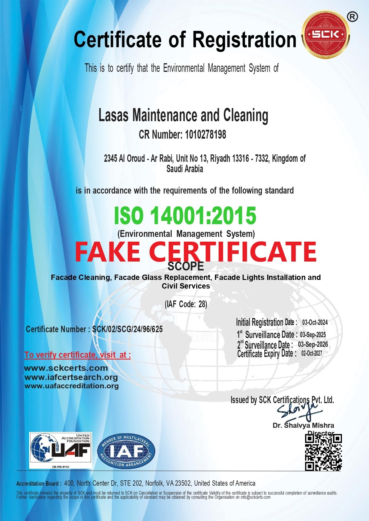 It has come to our attention that counterfeit certificates bearing our logo and branding have been circulated in various country. To confirm the authenticity of any certificate, please visit our official verification page at www.sckcerts.com/misuse or contact us directly at info@sckcerts.com. We are actively investigating these incidents and are committed to protecting the integrity of our certification process.